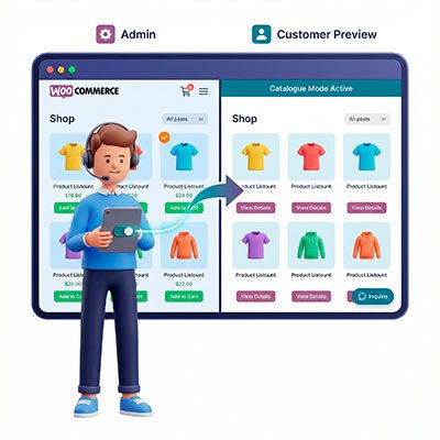 Quickly switch your entire store from a shop to a digital catalogue. Activating this mode instantly hides "Add to Cart" buttons across your site to prevent unauthorized checkouts.
