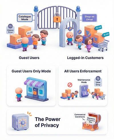 Gain full control over price visibility and purchasing buttons on your WooCommerce store.